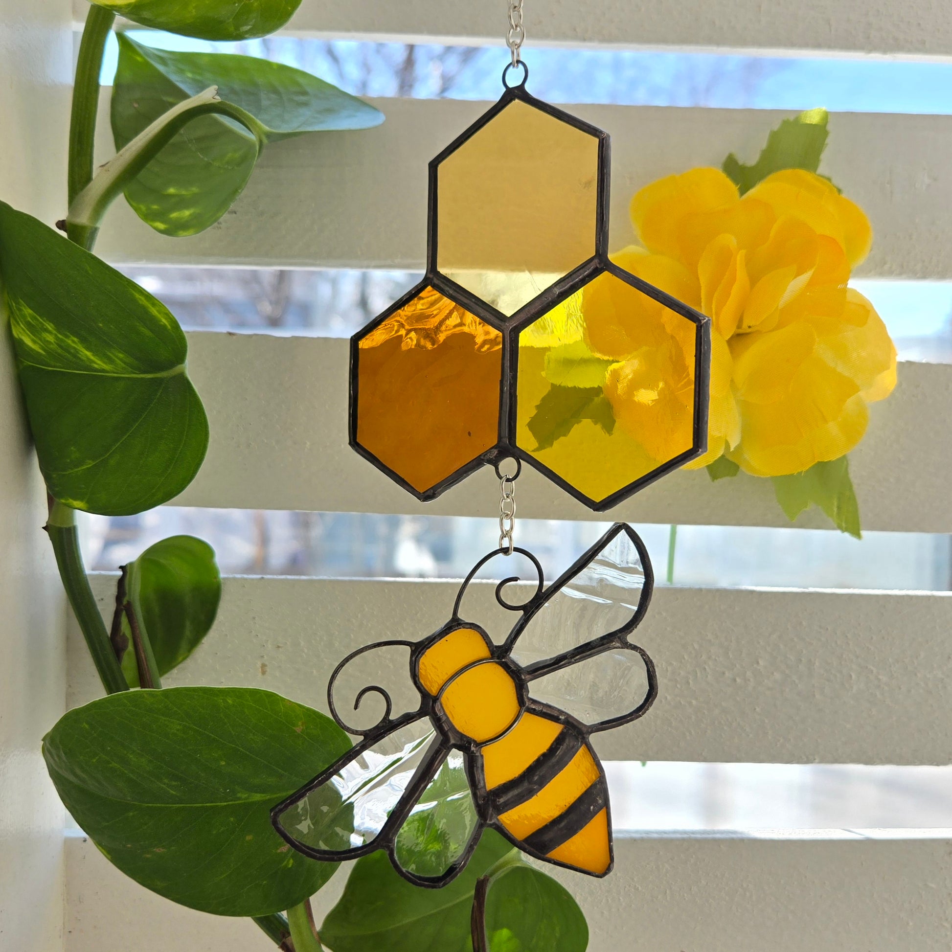 Let the sunlight bring this stunning piece to life with its warm, amber glow! 🌿🐝